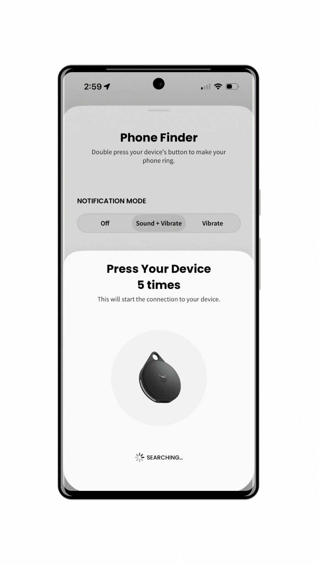 Note: From Pebblebee App version 1.2.x onward, double-press triggers Phone Finder.